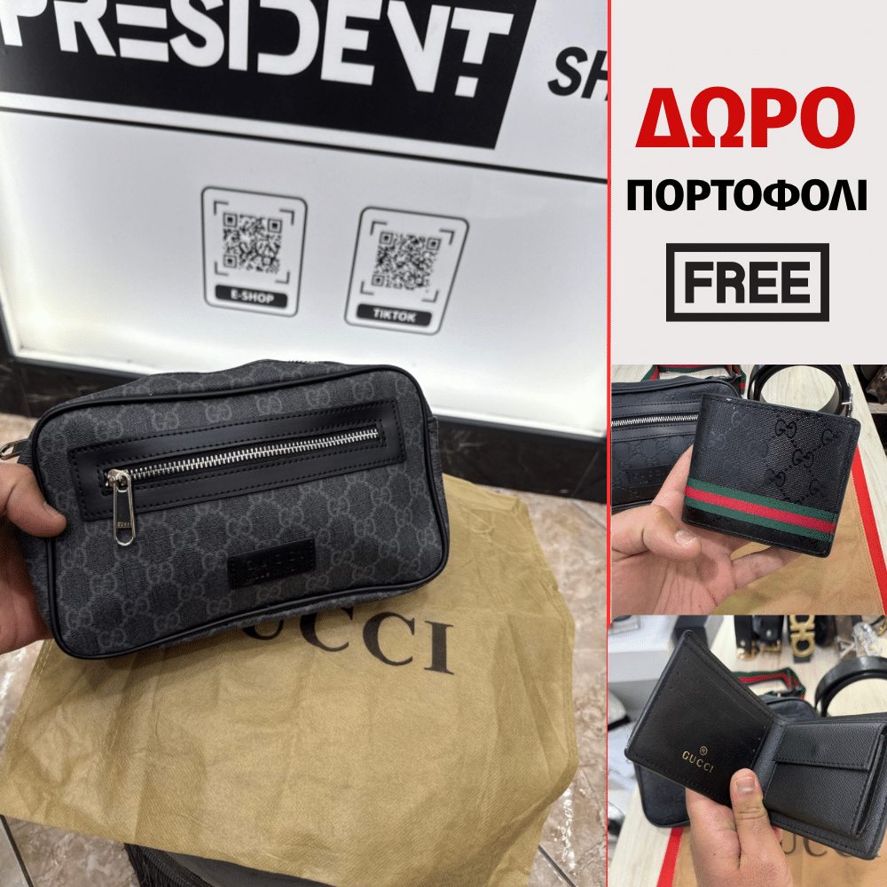 Gucci Τσαντάκι Μέσης – Grey/Black + Δώρο Πορτοφόλι [Δερμάτινο]
